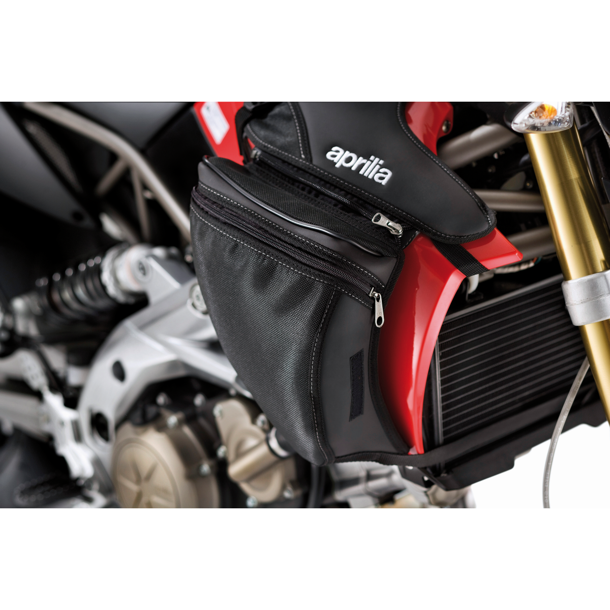 The bags feature single zipper closure and can only be used with the official Aprilia Accessory Tank Cover -899566