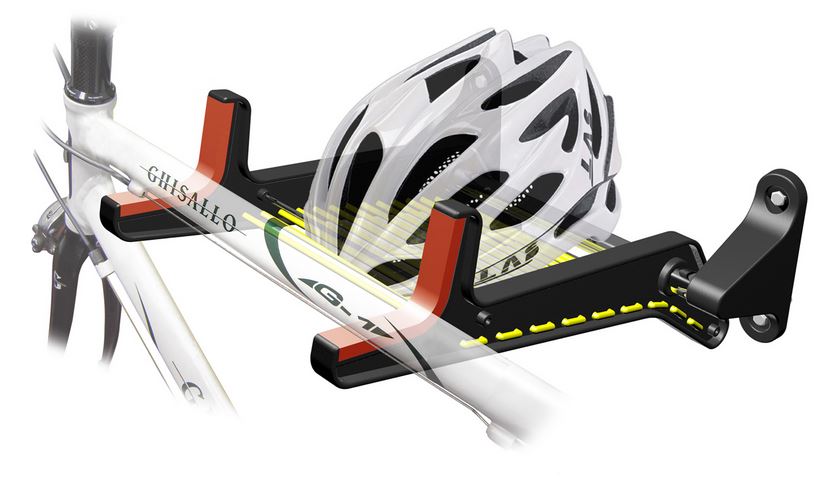 Espositore bicicletta da parete flessibile. - Facile da mettere sul muro del vostro garage, officina o negozio. - Completamente pieghevole per risparmiare quanto più spazio possibile. - Strisce di presa in nylon flessibile per posizionare i caschi, occhiali guanti appesi ... - Superficie di nylon con una finitura perfetta per rispettare pienamente il telaio della bicicletta. - Questo dispositivo a parete, è possibile impostralo in una sola volta: guanti, occhiali, casco, e, naturalmente, la bicicletta.
