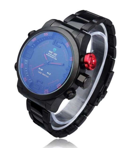Specification: Item Type: Wristwatches Dial Window Material Type: Hardlex Case Material: Stainless Steel Brand Name: Weide Dial Material Type: Stainless Steel Water Resistance Depth: 30 m Movement: Japanese Quartz Band With: 20mm to 29mm Dial Diameter: 5.0 cm Style: Fashion & Casual Gender: Men Condition: New with tags Dial Display: Analog & LED Digital Feature: Auto Date,Water Resistant,Complete Calendar Case Shape: Round Band Material Type: Stainless Steel Band Length: 19 cm Model Number: WH2309B Color: Yellow, Red, Blue, White (Choose the one you like)
