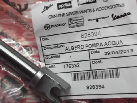 i codi appartenente a questo kit sono: 828394 albero 20mm, 497486 kit tenuta pompa acqua (ceramica) , 825577 paraolio 8x16x17mm.