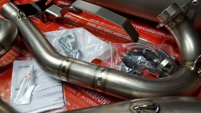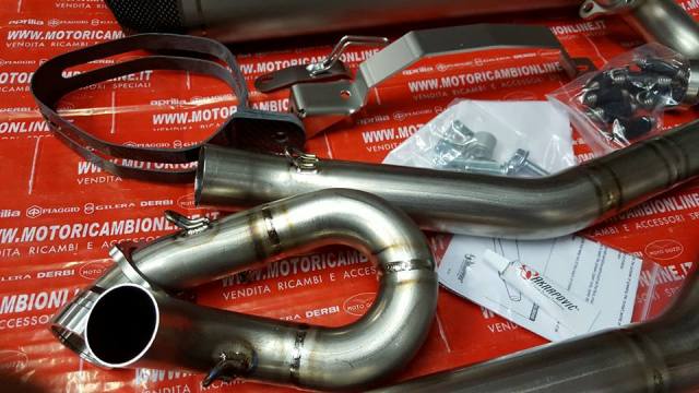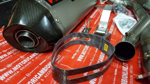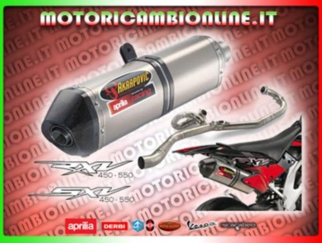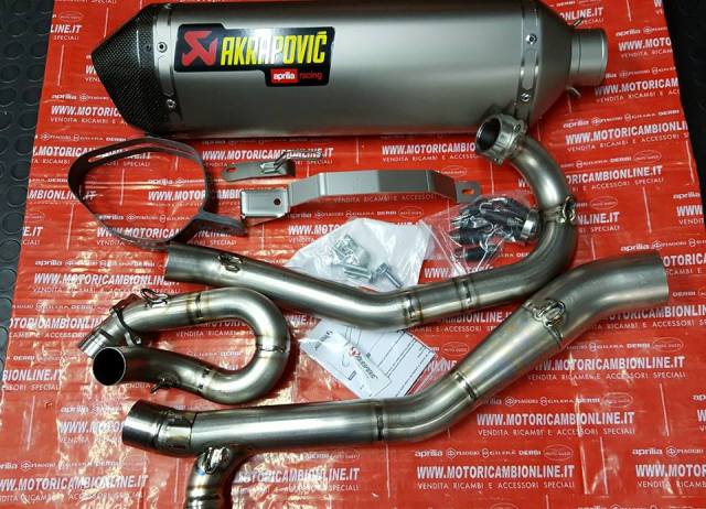 Desarrollado directamente en las sedes de competición de la colaboración entre Aprilia Off Road Racing Team y el equipo de I + D Akrapovic todo terreno. Totalmente silenciador de titanio (interna y externa) con el caso de la cubierta de carbono de vuelta. Con sparkarrester