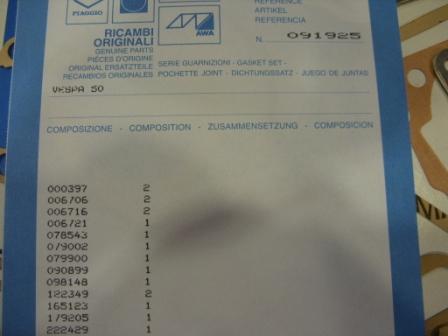 Serie guarnizioni completa kit composto da 17pz per Piaggio Vespa 50 special telai v5a1 ,v5b3 , v5r1 , v5sa1 ,v9b1 codice ricambi 091925