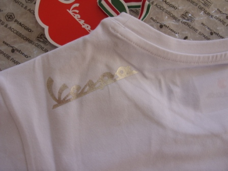T-shirt Piaggio Vespa bianca taglia xl (vestibilita' piccola) l'abbiaglimento vespa ha una vestibilita' più piccola confronte a capi generici che si trovono sul mercato di altre marche "circa una taglia in meno quindi è simile a una taglia L femminile