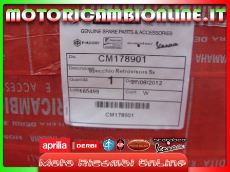 Applicazioni Codice : CM178901 Descrizione Cilind Anno Telaio/VDS VESPA S 2T & COLLEGE 50 2007-2012 C38103 VESPA S 4T-4V & COLLEGE 50 2008-2012 M38600 VESPA S 4T 3V IE 125 2012-2012 MM68301 VESPA S 4T EURO 3 125 2007-2008 M44302 VESPA S 4T IE & COLLEGE 125 2009-2011 M68101 VESPA S 4T IE & COLLEGE 150 2009-2012 M68201 VESPA S 4T 150 2008-2009 M44402